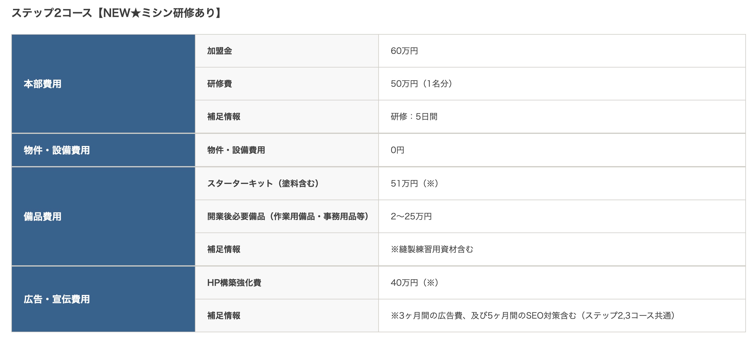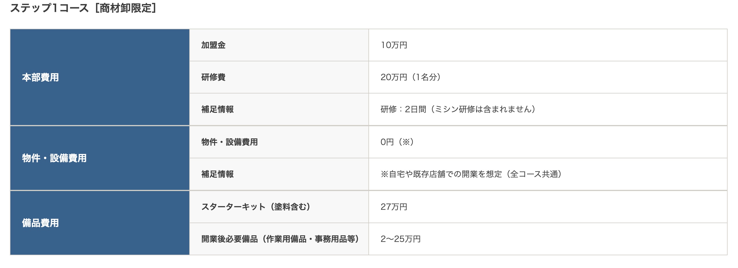 ※開業時にかかる費用を税抜きで記載しています