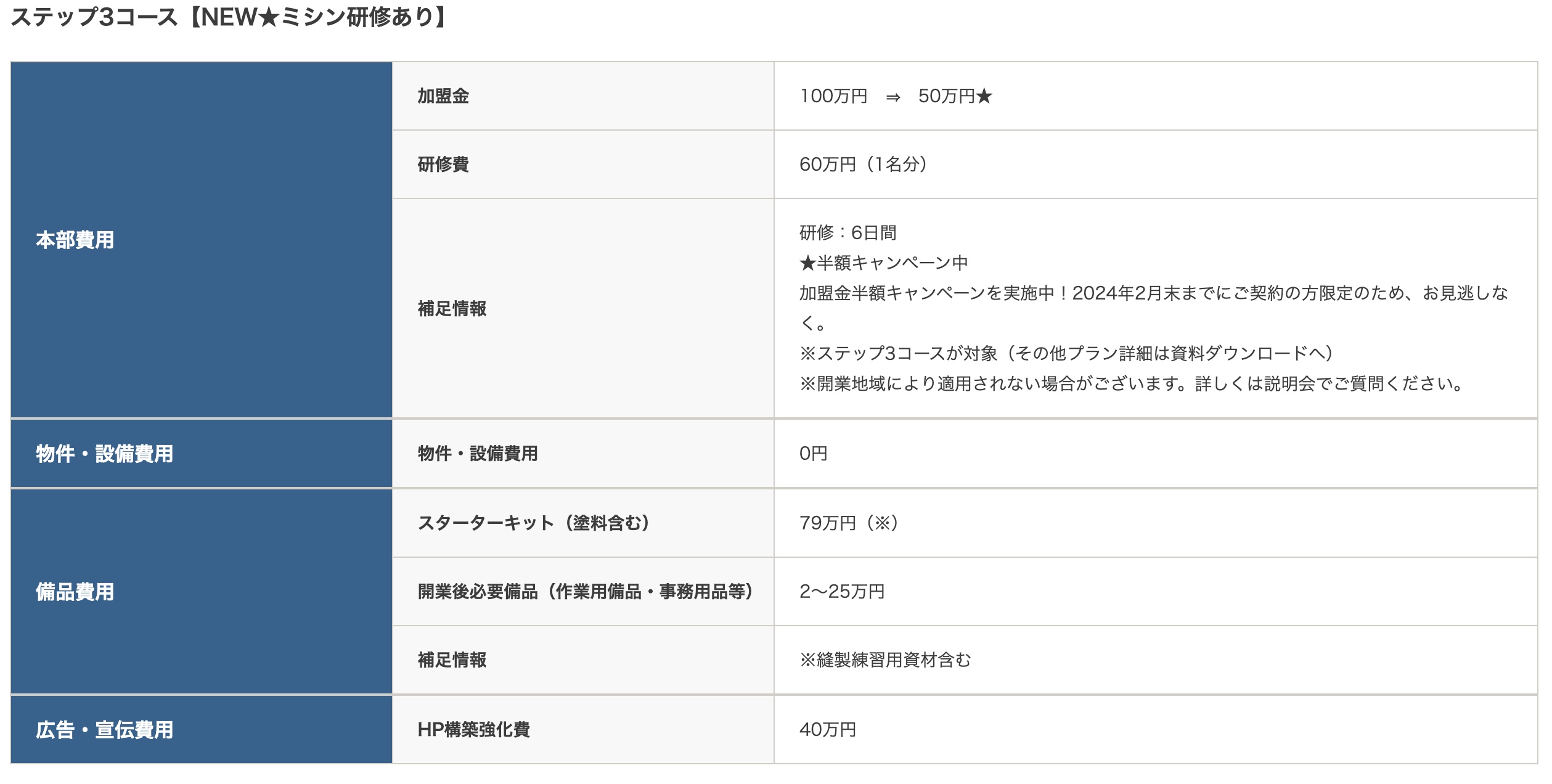 多くの加盟店が初期費用の負担を最大半額で開業しています。